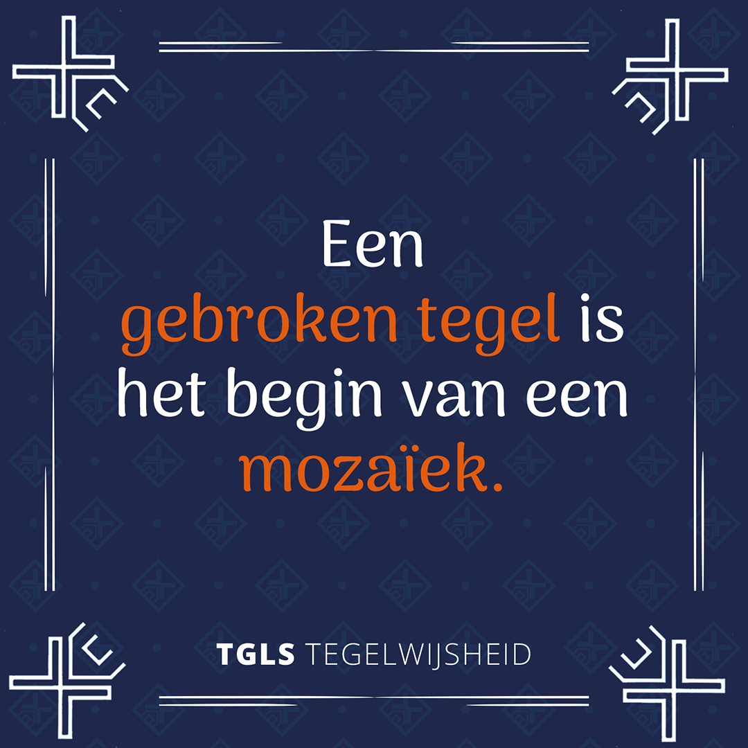 Heb je zelf een tegelwijsheid? Mail hem naar info@tgls.nl en wie weet delen we binnenkort jouw tegelwijsheid met de wereld.